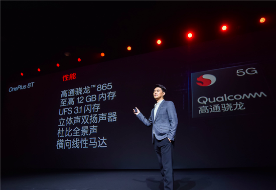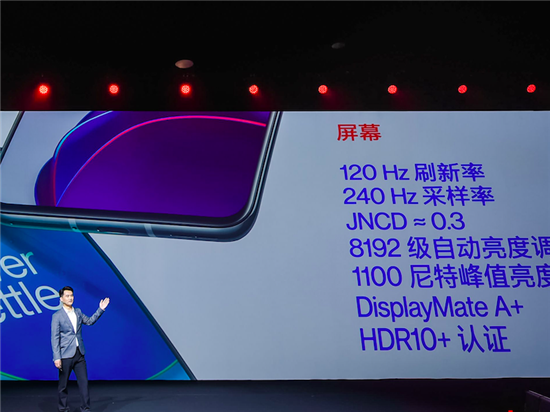 圖:一加首席設(shè)計(jì)師劉浩然介紹一加8T屏幕參數(shù)