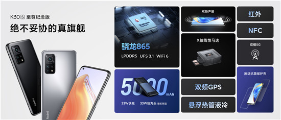 作為K30系列的「雙至尊」之一,Redmi K30S至尊紀(jì)念版自然擁有“怪獸般“的強(qiáng)勁性能。搭載高通驍龍865旗艦處理器,支持SA和NSA雙模5G網(wǎng)絡(luò)。配合最新一代LPDDR5內(nèi)存和UFS 3.1存儲組合,無論是日常使用還是大型游戲都能流暢運(yùn)行不卡頓。不僅有頂級的旗艦性能,還擁有完善的旗艦體驗。