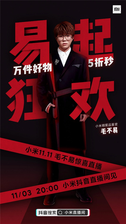 據悉11月3日毛不易空降小米直播間,用戶(hù)登陸抖音搜索“小米直播間”參與互動(dòng),萬(wàn)件5折好物搶到手軟。