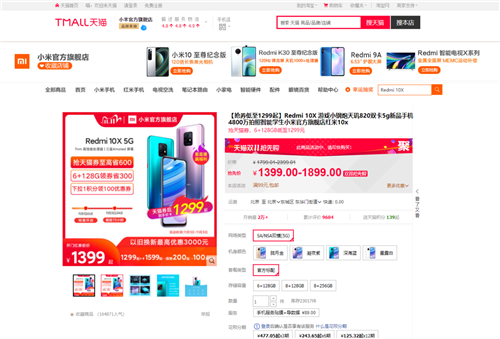 目前Redmi 10X在天貓平臺搶券后,Redmi 10X 5G 6+128GB版本低至1299元。Redmi 10X 4G明月灰已經(jīng)開(kāi)售,4+128GB開(kāi)門(mén)紅到手價(jià)999元。