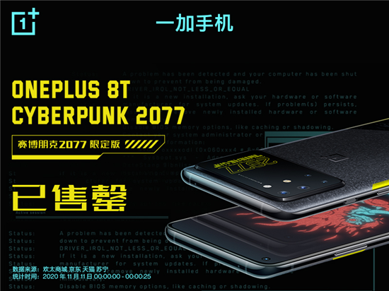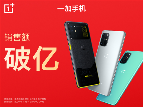 11月11日,一年一度的雙十一購物狂歡節(jié)開啟,一加8T賽博朋克2077限定版全渠道開售全網(wǎng)25秒售罄,一加8T和一加8系列全平臺銷售額破億。