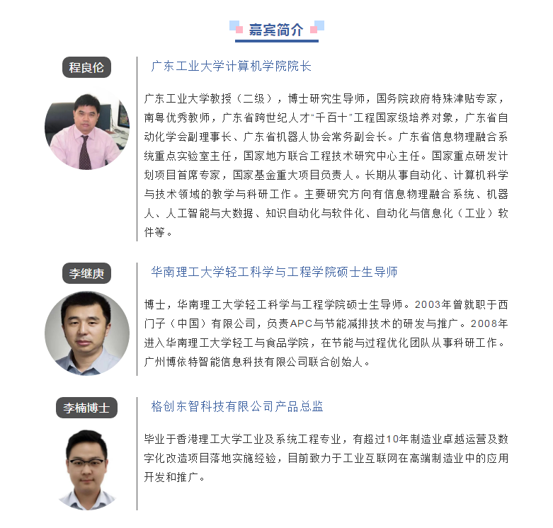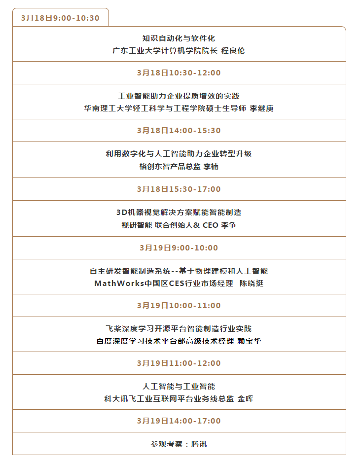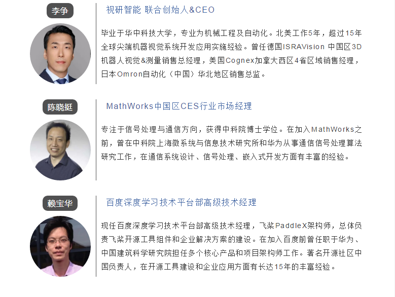本次課程講師陣容強(qiáng)大,邀請到廣東工業(yè)大學(xué)計算機(jī)學(xué)院院長程良倫、華南理工大學(xué)輕工科學(xué)與工程學(xué)院碩士生導(dǎo)師李繼庚,以及格創(chuàng)東智、視研智能、MathWorks、百度飛槳、科大訊飛等領(lǐng)先人工智能應(yīng)用及技術(shù)企業(yè)的專家授課。此外還將走進(jìn)位于深圳濱海的騰訊新總部大樓,進(jìn)行一場關(guān)于產(chǎn)業(yè)互聯(lián)網(wǎng)智能制造解決方案的研討,屆時騰訊云專家將深度介紹其工企互聯(lián)、工企營銷決策、工業(yè)視覺AI平臺、設(shè)備故障預(yù)測與健康管理等解決方案和實戰(zhàn)案例。通過此課程的學(xué)習(xí),您將具有以下收獲: