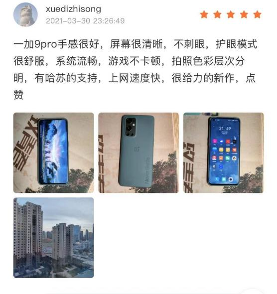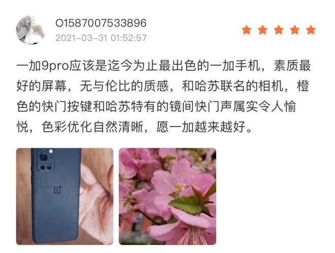 此外,首批購(gòu)買一加9系列的用戶也紛紛給予好評(píng),“一加9 Pro手感很好,系統(tǒng)流暢不卡頓”、“素質(zhì)最好的屏幕”。