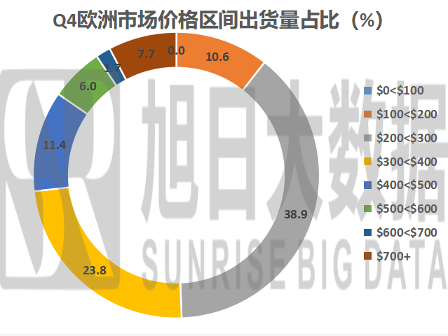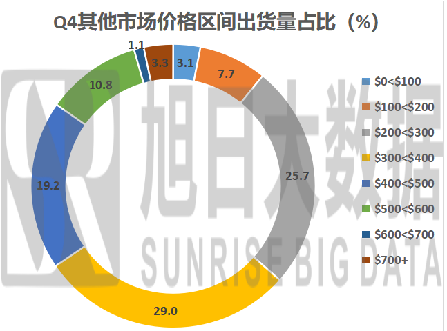 歐洲和其他地區(qū)市場情況較為相近,200-400美元的價格區(qū)間占據(jù)了60%左右的市場空間,200-500美元的價格區(qū)間則能占到高達80%左右的市場份額。