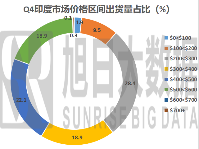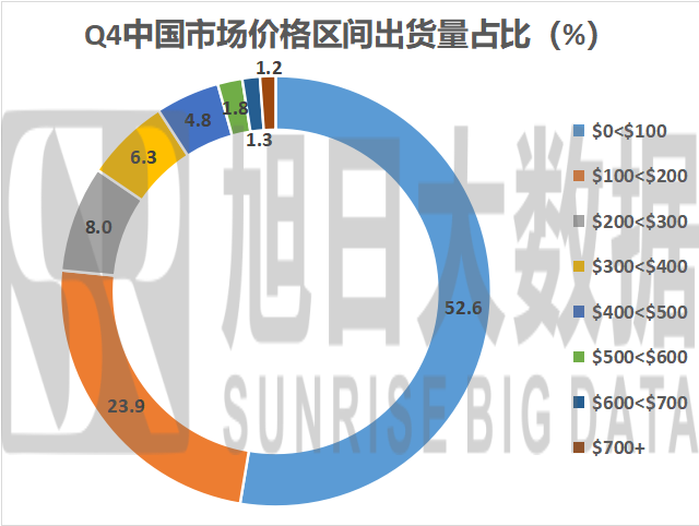 通過比較很容易可以看出來,各區(qū)域消費水平差距較大。從全球總體消費水平來看,出貨量最大的范圍是處于200-500美元的價格區(qū)間,占比比超過了60%的份額。