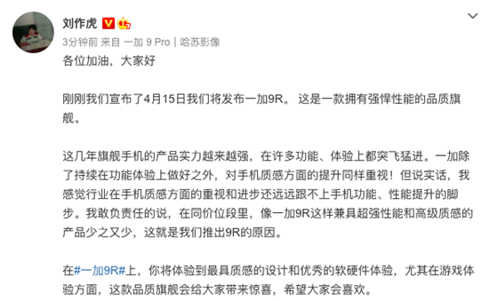 縱觀整個手機(jī)市場發(fā)展,旗艦手機(jī)在功能體驗(yàn)上飛速發(fā)展,但手機(jī)品牌對質(zhì)感方面的重視和進(jìn)步還遠(yuǎn)遠(yuǎn)不足,這也是一加9R推出的原因。一加手機(jī)CEO兼創(chuàng)始人劉作虎表示:“一加9R是一款擁有強(qiáng)悍性能的品質(zhì)旗艦,兼具超強(qiáng)性能和高級質(zhì)感,特別在游戲體驗(yàn)上會給用戶帶來驚喜。在同價位段里,像一加9R這樣兼具超強(qiáng)性能和高級質(zhì)感的產(chǎn)品少之又少”.