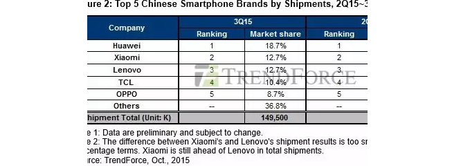 九月剛過,統(tǒng)計(jì)機(jī)構(gòu)TrendForce就給出了中國智能手機(jī)出貨和市場份額排名,其中,華為終于邁過了小米這道坎,榮登第一,同時(shí)也終結(jié)了小米銷量六連冠的記錄。小米雖然放出了小米4c和紅米note2,仍然被華為超過,前路不容樂觀。不過,四季度小米就要放大招了,千呼萬喚不出來的小米5在年底就有可能問世了。小米5身世坎坷,雷軍早就放話,市場一直期待,只是高通不爭氣,驍龍810散熱差,廢了,820又研發(fā)不出來,直接導(dǎo)致小米5難產(chǎn)。小米5的問世,很有可能扭轉(zhuǎn)小米的頹勢。