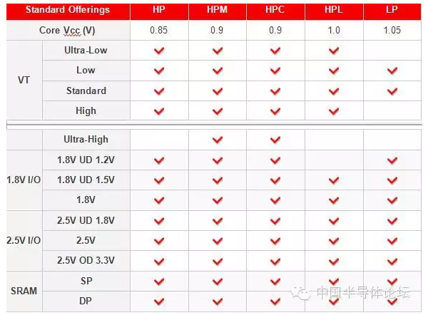 2、在每個工藝節(jié)點(納米數(shù)相當)上,是否也同樣存在不同的功耗和性能的工藝選擇?