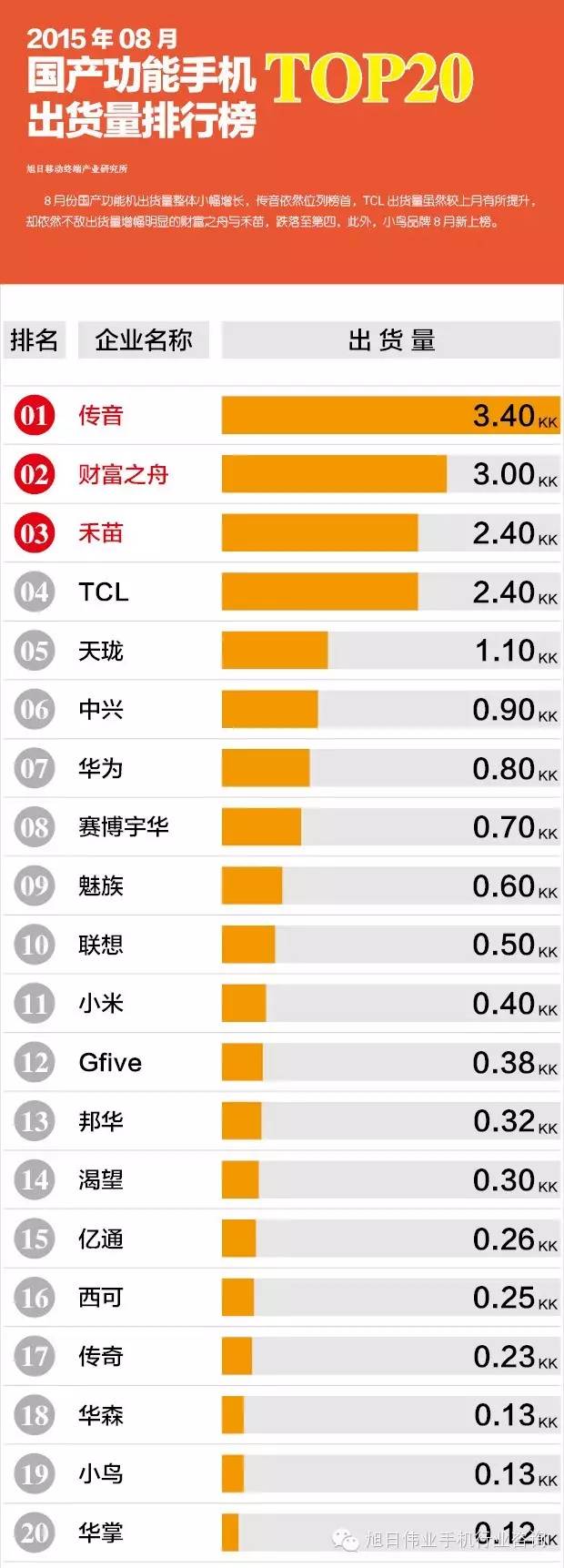 2015年08月國(guó)產(chǎn)功能手機(jī)出貨量排行榜