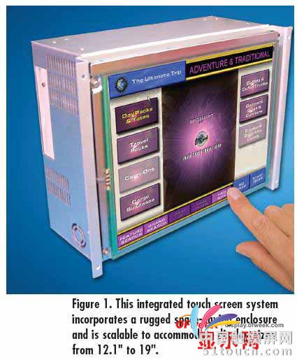 圖1:集成式觸摸屏系統(tǒng)包含一個耐磨損的狹小外殼,該系統(tǒng)可以升級以適應(yīng)從12.1英寸到19英寸的顯示器尺寸。