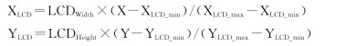 從觸摸屏控制器獲得的X與Y值僅是當(dāng)前觸摸屏的坐標(biāo),它不具有實用價值,這個值不但與觸摸屏分辨率有關(guān),而且也與觸摸屏和LCD的貼合狀況有關(guān)[4]。LCD與觸摸屏的分辨率和坐標(biāo)是不一樣的。因此,如果想得到體現(xiàn)LCD坐標(biāo)的觸摸屏位置,還需要在程序中進(jìn)行轉(zhuǎn)換,其轉(zhuǎn)換公式如下: