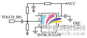單片機從端口TOUCH_SIN獲得的頻率信號的質(zhì)量,決定了觸摸屏能否快速響應(yīng)正確的觸摸動作[5]。因此,在觸摸信號頻率檢測電路設(shè)計中,使用施密特觸發(fā)器(SN74LVC1G14)可以將觸摸時產(chǎn)生的鋸齒波形信號整形成較規(guī)則的方波信號。經(jīng)過這樣的設(shè)計,也可以有效消除觸摸時因其他信號對頻率的干擾或過快點擊對觸摸屏精度造成的影響。