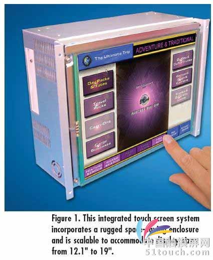 圖1:集成式觸摸屏系統(tǒng)包含一個耐磨損的狹小外殼,該系統(tǒng)可以升級以適應(yīng)從12.1英寸到19英寸的顯示器尺寸。